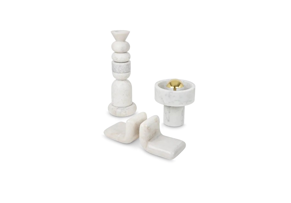 Stone Stacking designed by Tom Dixon is a set consisting of five marble candle holders, stackable and reconfigurable.