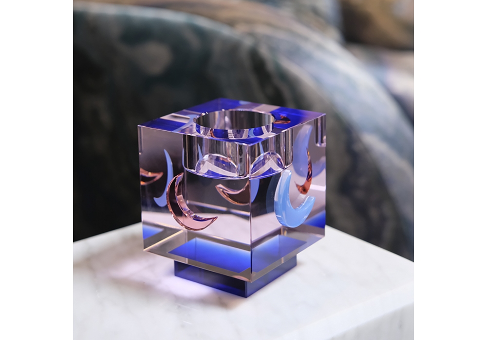 Lea produced and designed by Reflections Copenhagen is a rectangular candle holder in carved and hand-finished crystal decorated in different finishes.