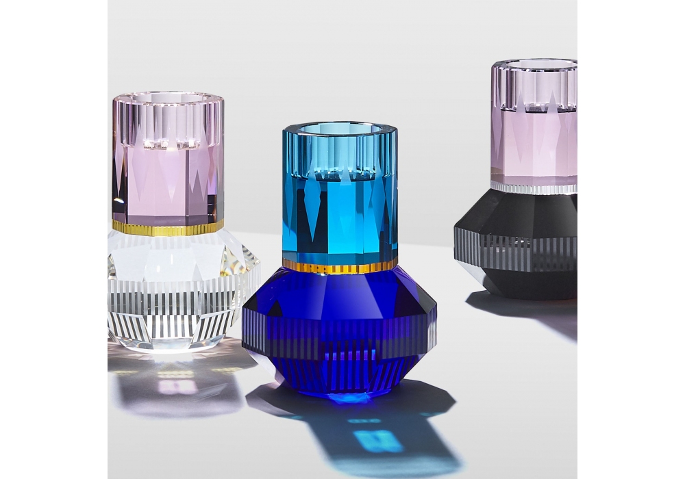 Chicago produced and designed by Reflections Copenhagen is a crystal candle holder structured by ude carved and hand finished geometric elements available in different finishes.