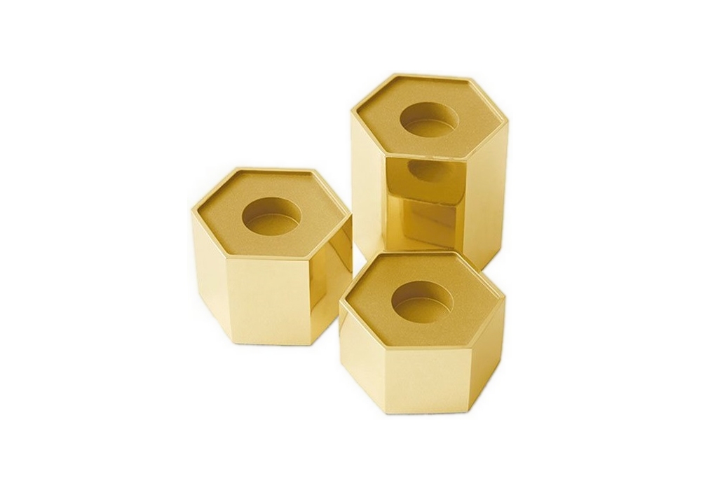 Candle Holder Hexagonal designed by Studio G&R for Gallotti&Radice is an hexagonal candle holder in solid brass.