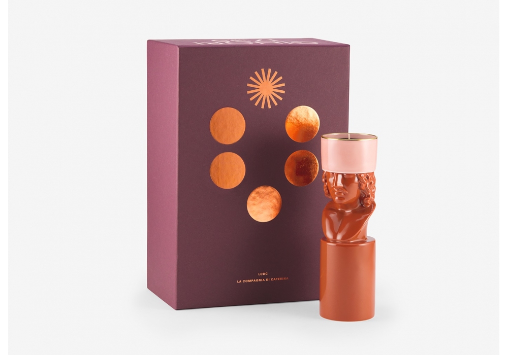 LCDC Il Letterato Red Clay designed by Luca Nichetto for Ginori 1735 is a porcelain refillable candleholder with 6 x 40g Orange Renaissance scented candles.