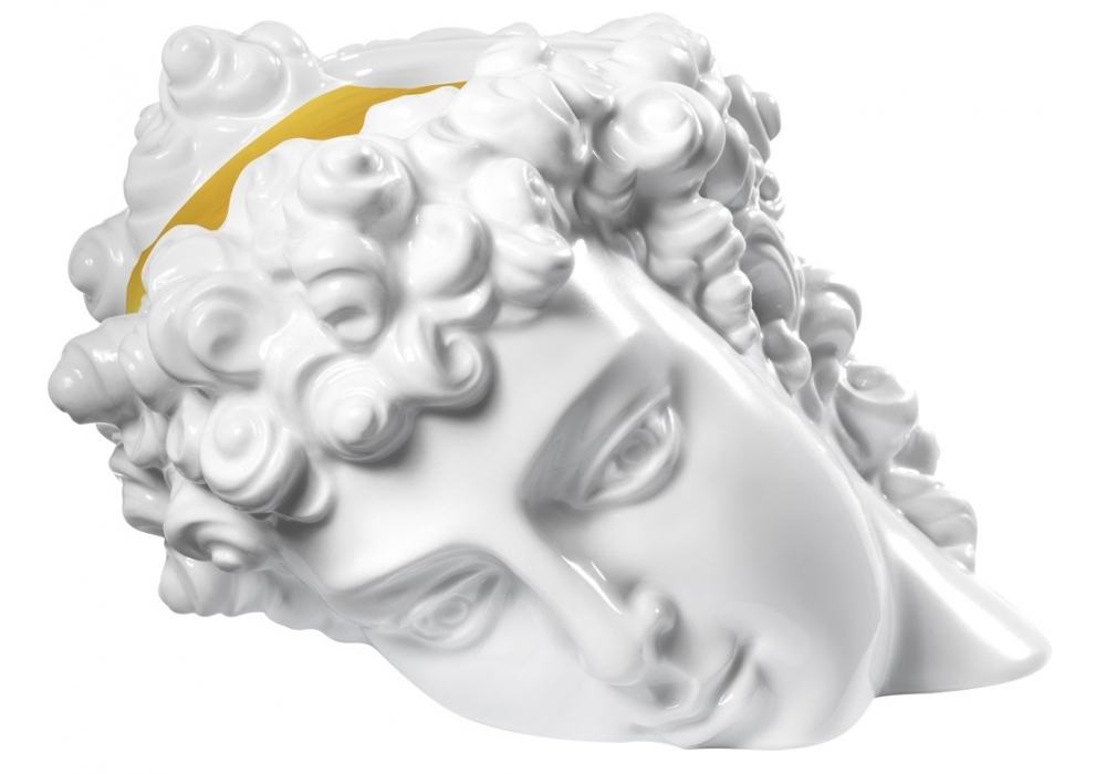 Scultura Ganemide Palazzo Centauro designed by Luke Edward Hall for Ginori 1735 is a precious design candle holder that depicts a dreamy-looking head decorated with a gold band that crosses her hair. Made of pure porcelain, it is worked and decorated entirely by hand.