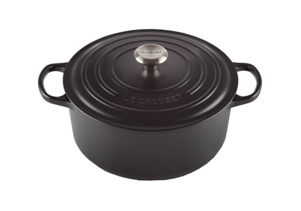 Cocotte Rotonda Evolution 18 designed by Le Creuset is a round enamelled cast iron casserole available in different colours. White interior finish except for the black casserole which has black interior.