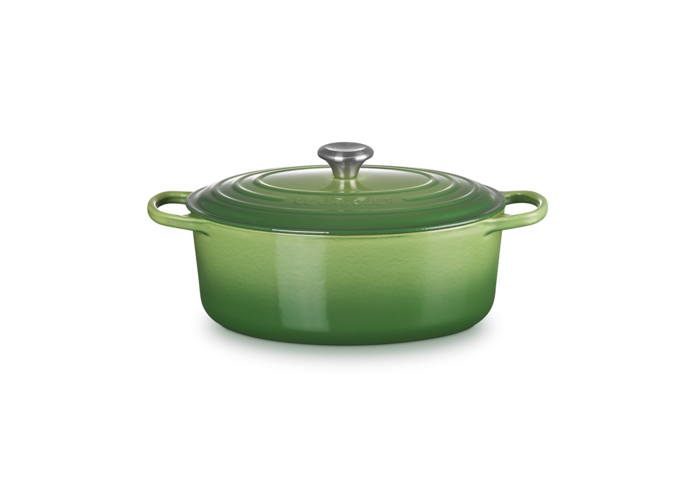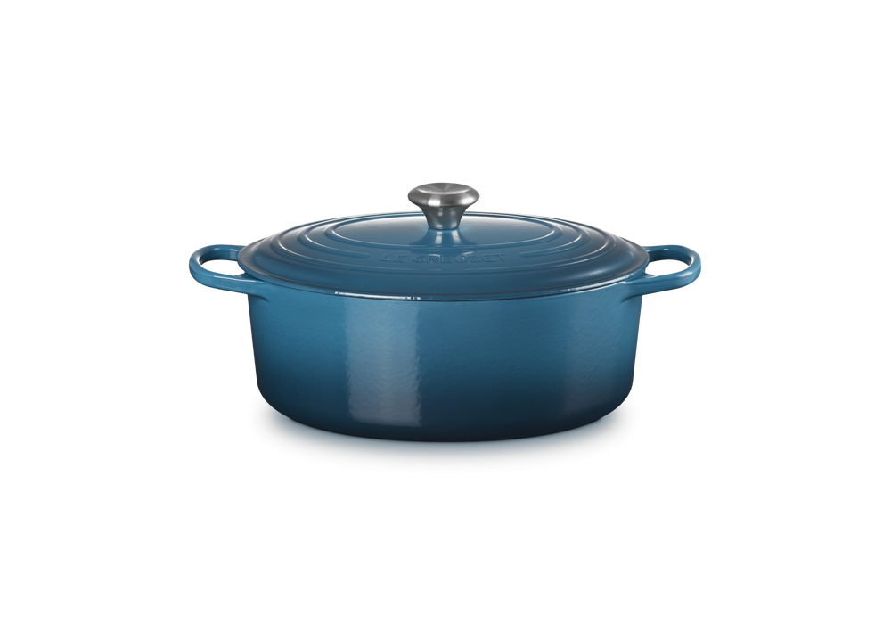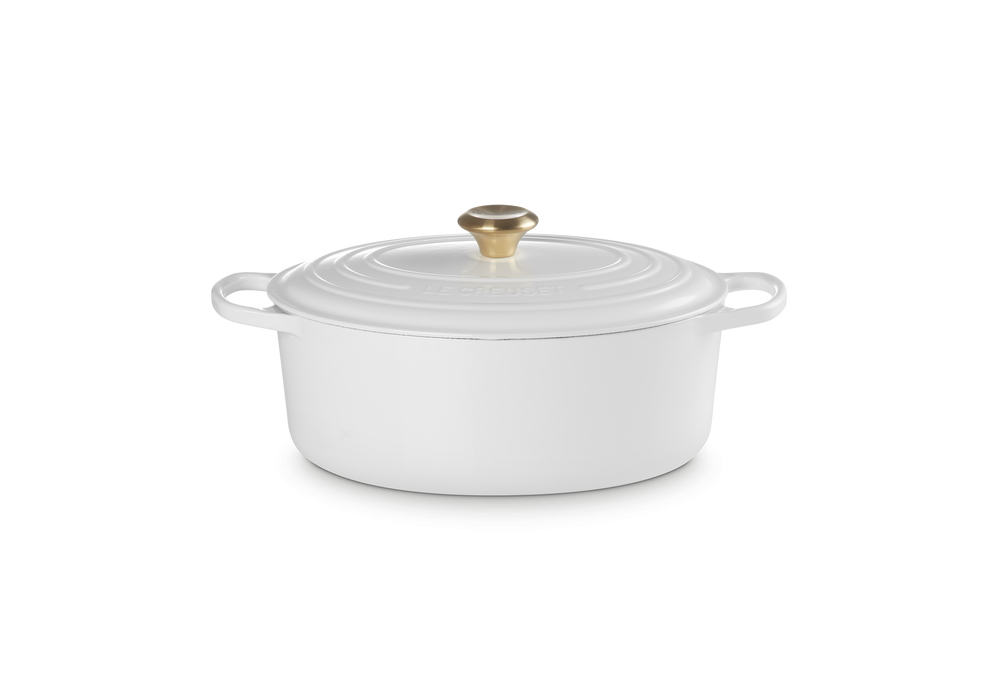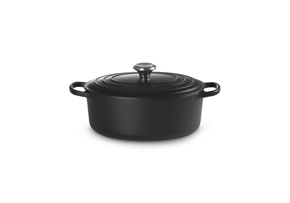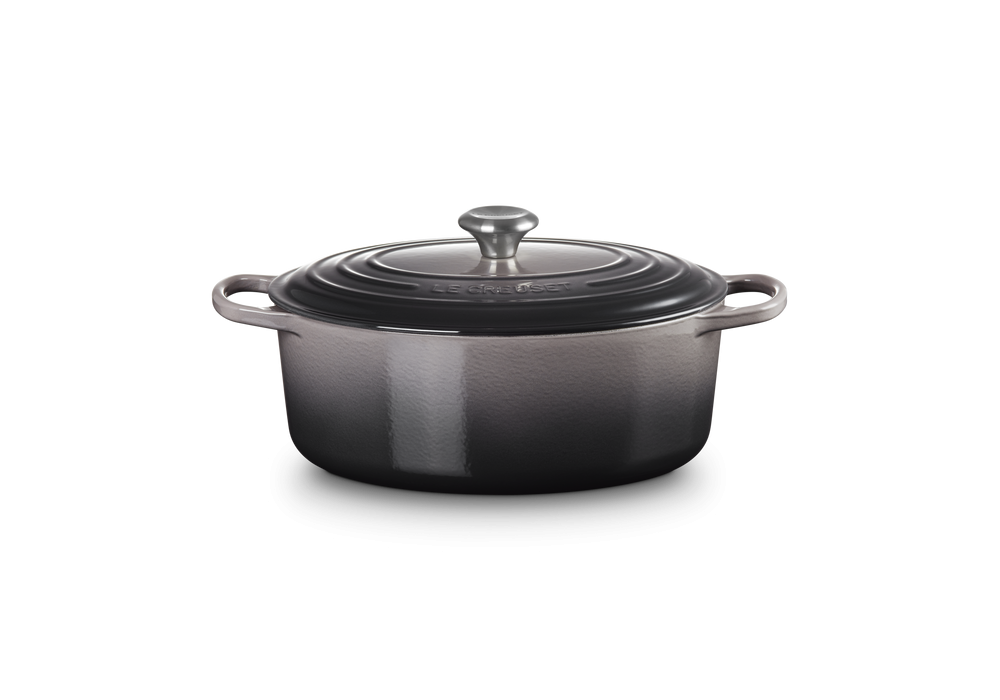 Cocotte Ovale Evolution 31 designed by Le Creuset is an oval cast iron casserole available in different colours. White interior finish except for the black casserole which has black interior.