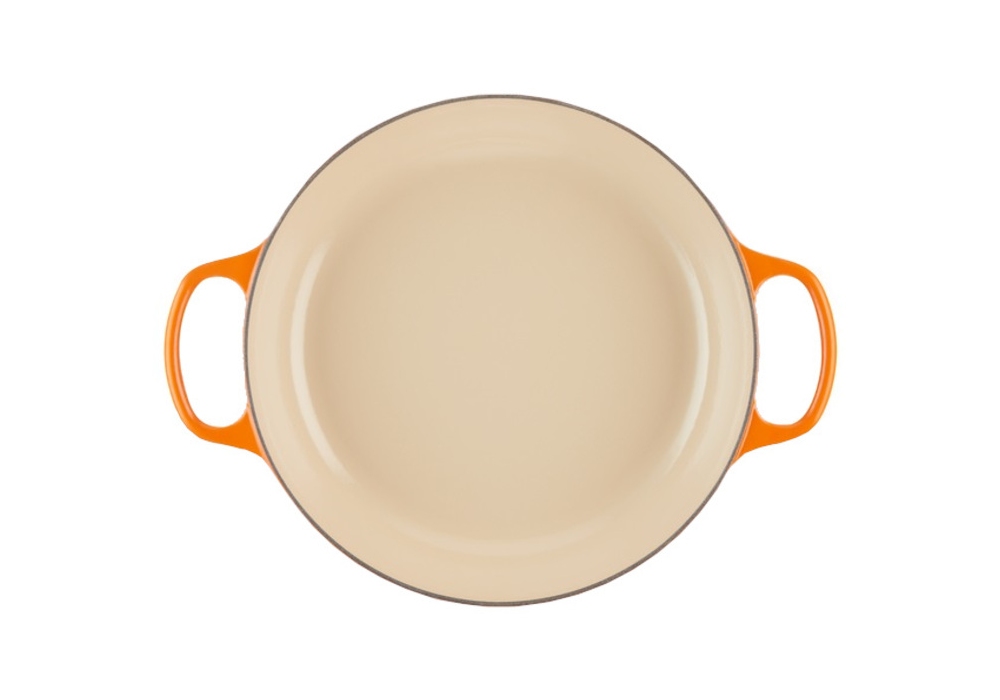 Tegame Basso Rotondo Evolution 30 designed by Le Creuset is a low round cast iron casserole available in different colors. Internal finish in white.