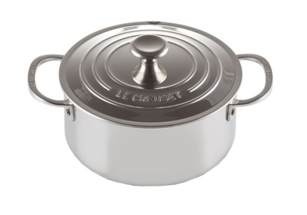 Pentola con Coperchio 26 designed by Le Creuset is a stainless steel pot with lid.