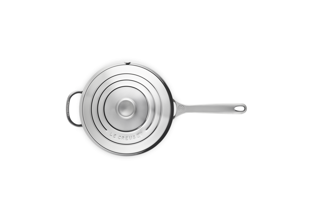 Padella “Dello Chef” con Coperchio Antiaderente designed by Le Creuset is a stainless steel pan with non-stick lid and interior.