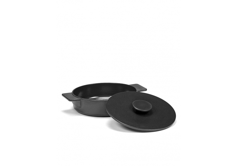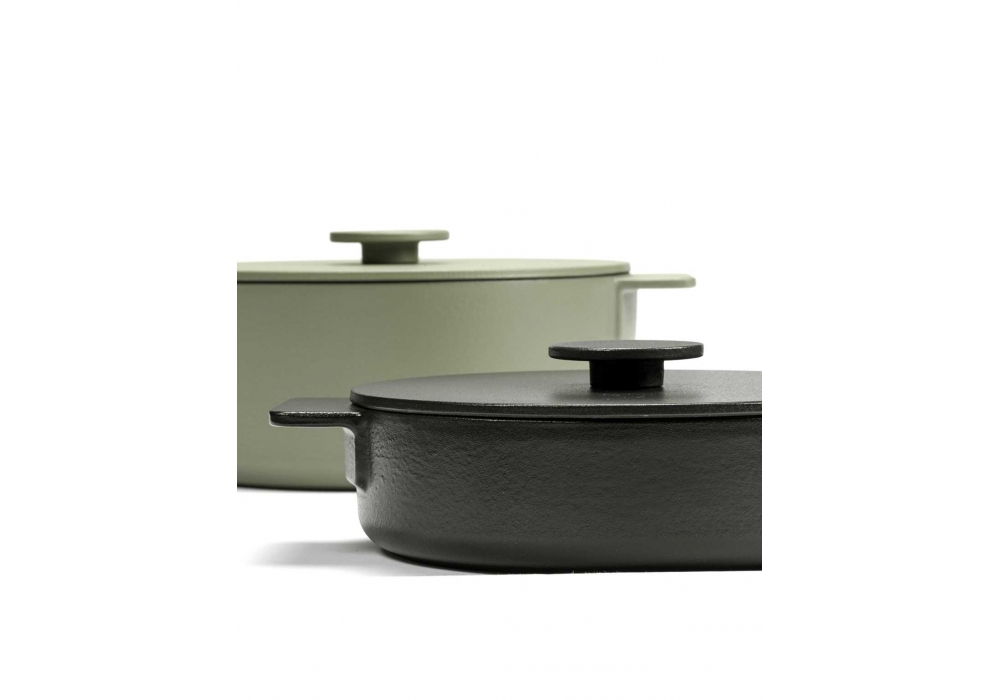 Pot designed by Sergio Herman for Serax is a saucepan with handles, entirely made of black or green painted cast iron.