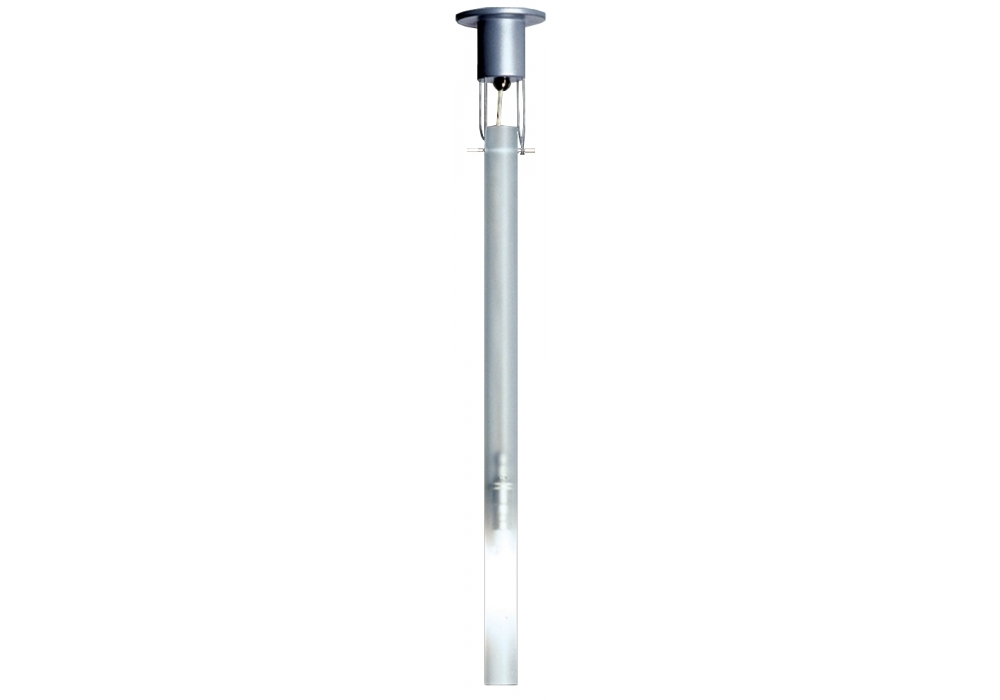 Canna Nuda designed by Piero Castiglioni and Roberto Menghi for Nemo is a wall or ceiling lamp with articulated structure in satin and nickel-plated metal. The diffuser is cylindrical in sandblasted glass and shields a dimmable halogen or LED light source. Canna Nuda is available in different finishes and sizes.