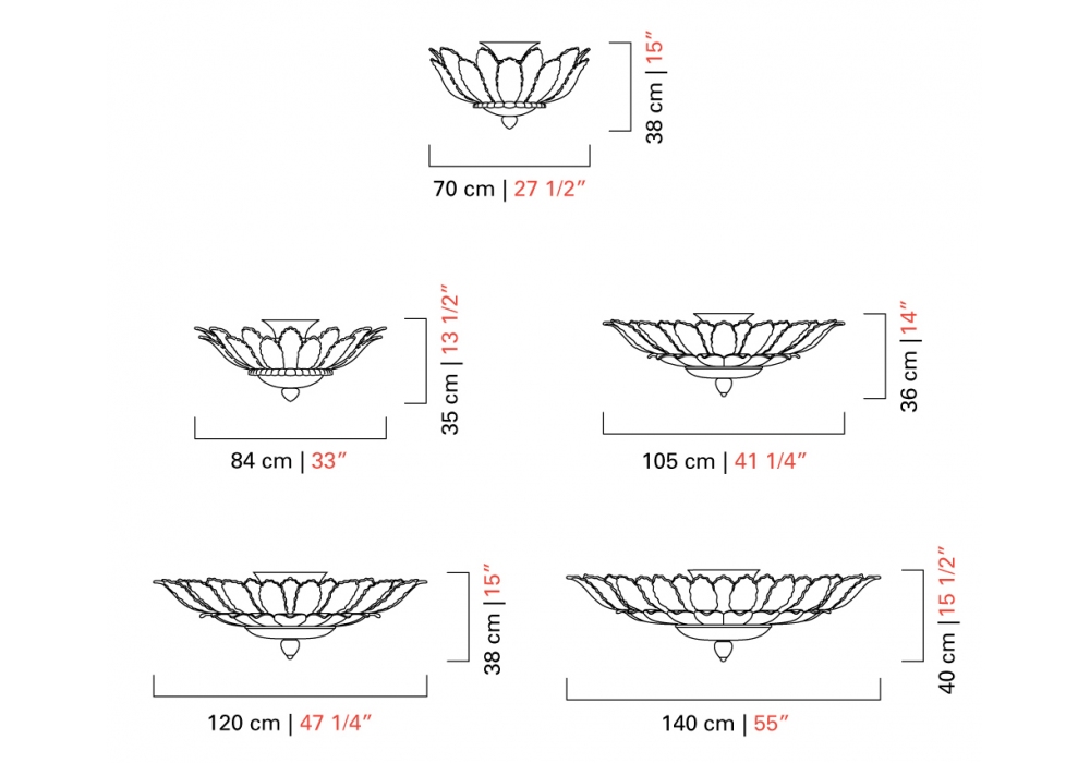 | Shade diameter | Ø 70 cm; Ø 84 cm; Ø 105 cm; Ø 120 cm; Ø 140 cm. |
