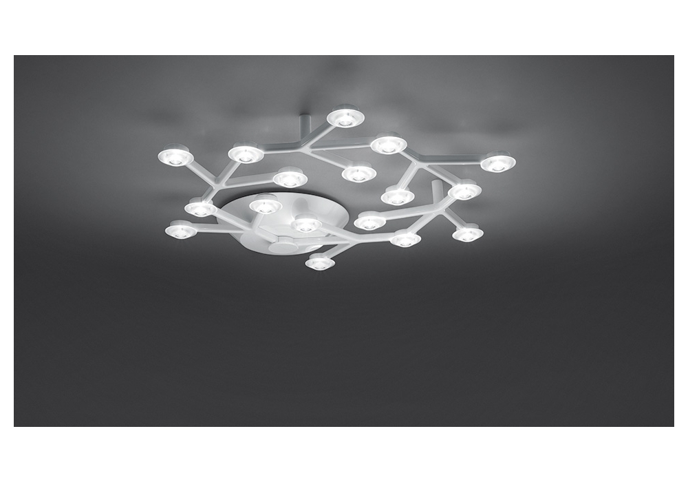 Led Net Circolare designed by Michele De Lucchi & Alberto Nason for Artemide is a ceiling lamp with a supporting structure in glossy white painted aluminium. Each LED is equipped with a transparent methacrylate lens and a satin methacrylate lens holder. the LEDs adopted are integrated with Push dimming system with remote control.