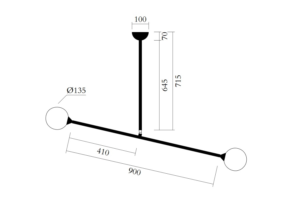 Two Spheres is a ceiling lamp produced by Atelier Areti. Composed of a metal powder coated finishes available in black or white, the joint brass, and glass lamp shades.