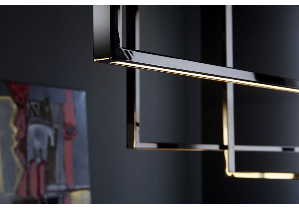 Mondrian Led designed by Massimo Tonetto for Venicem is a beautiful ceiling lamp with direct and indirect light. Natural brass, polished brass or black nickel structure.