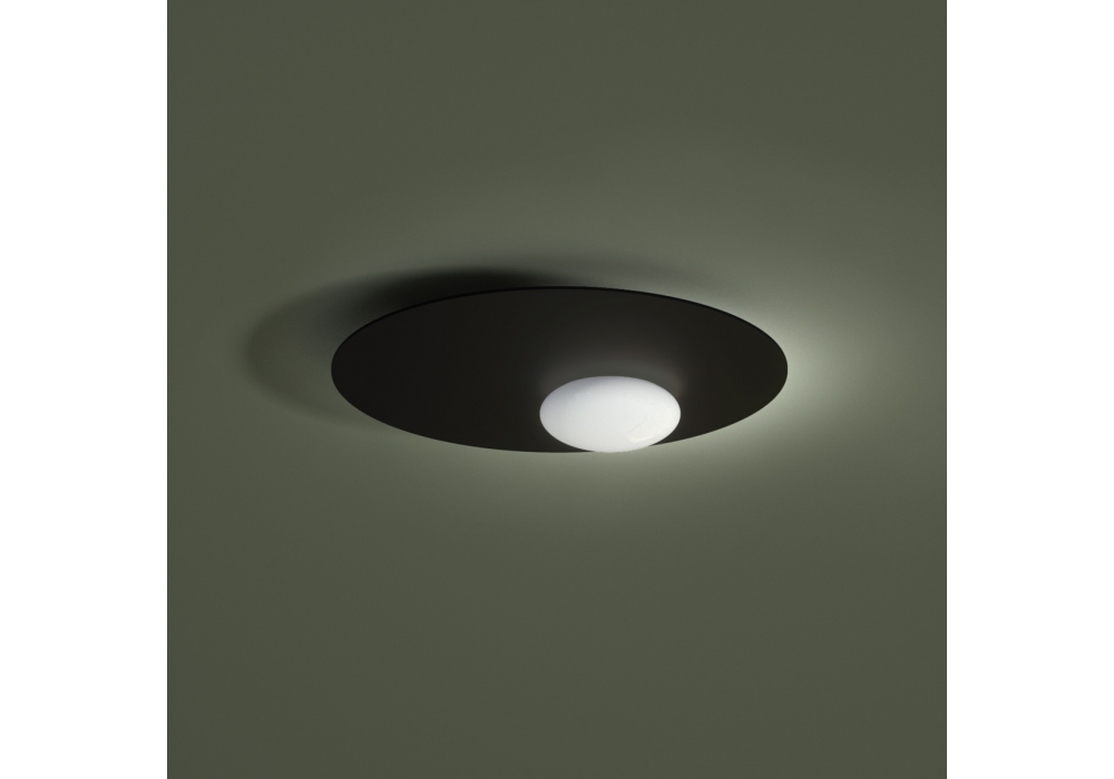 Kwic designed by S. & R. Cornelissen for Axo Light is a ceiling/wall lamp made of steel and aluminumin. Opaline blown glass diffuser. Available in three finishes and two sizes. Built-in dimmable LED light source.