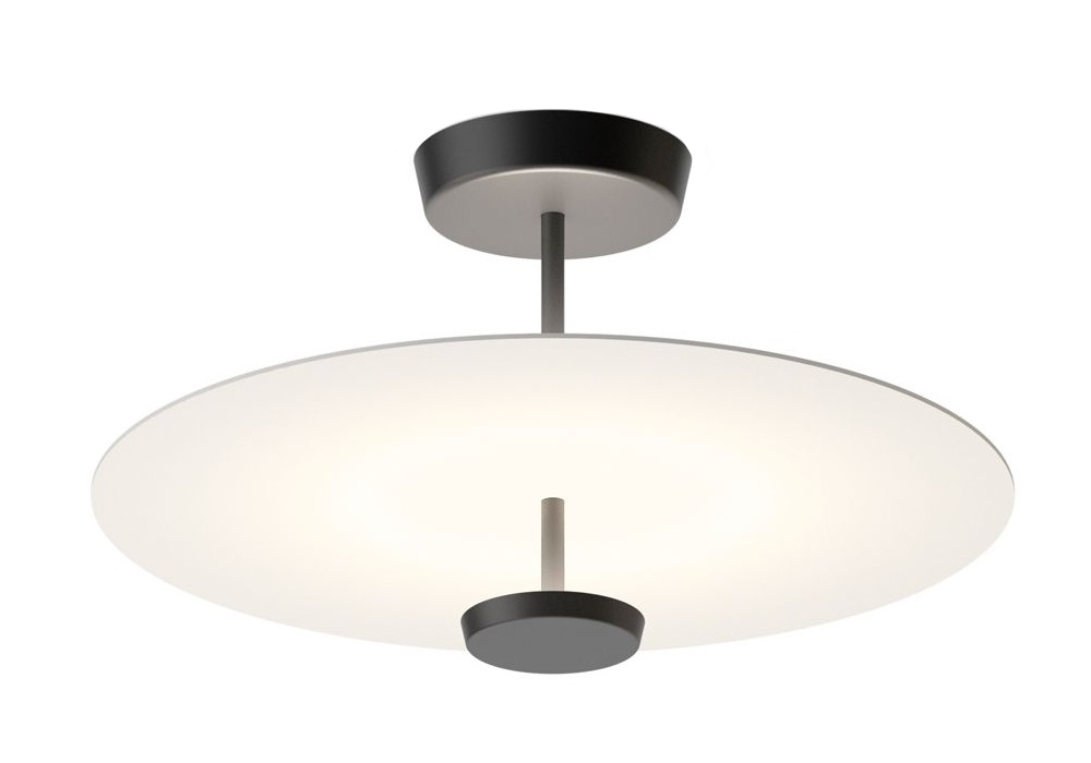 Flat 5915 designed by Ichiro Iwasaki for Vibia is a ceiling lamp with aluminum rosette and painted steel supporting structure. The diffuser is a polycarbonate disc with an aluminum lampshade and adopts dimmable LED light sources. Flat 5915 is available in different shades of light and dimmability.