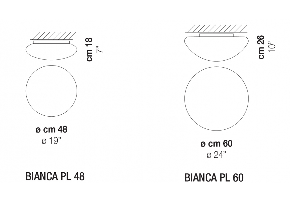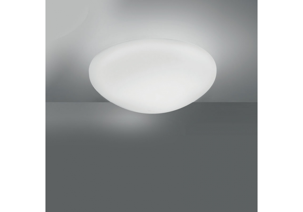 Bianca designed and produced by Vistosi is a ceiling lamp with a glossy white metal supporting structure. The diffuser is in circular glass with a glossy white finish and adopts a dimmable LED or halogen light source with E27 fitting. Bianca is available in different models.
