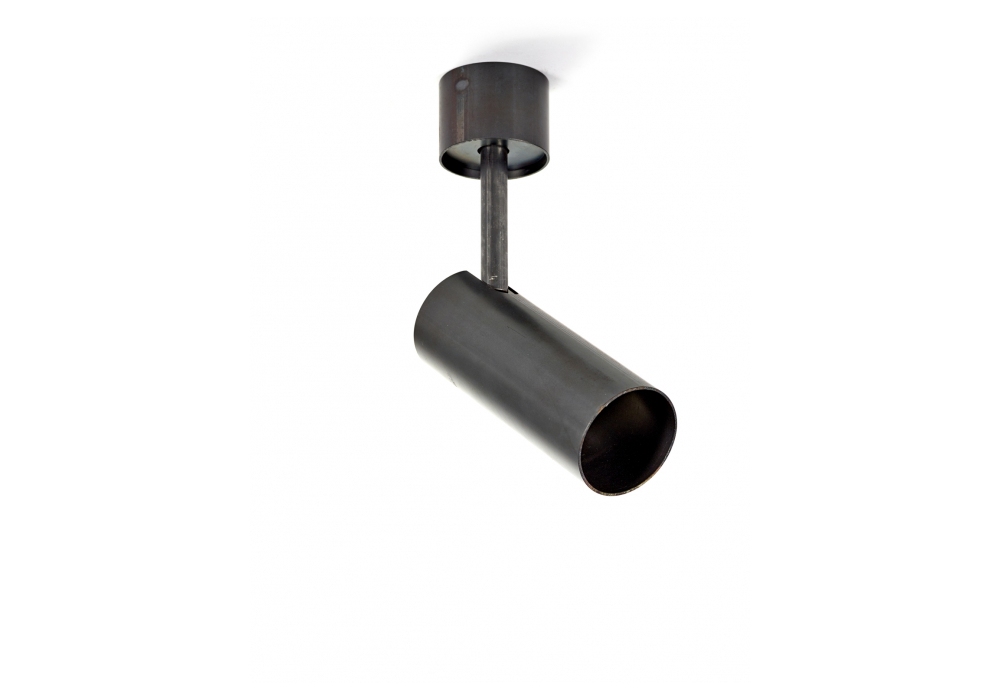 Sophisticated Spotlight designed by Koen Van Guijze for Serax is a ceiling lamp, with circular canopy and cylindrical articulated structure, in bluesteel painted black. The light source used is LED or halogen with GU10 coupling.