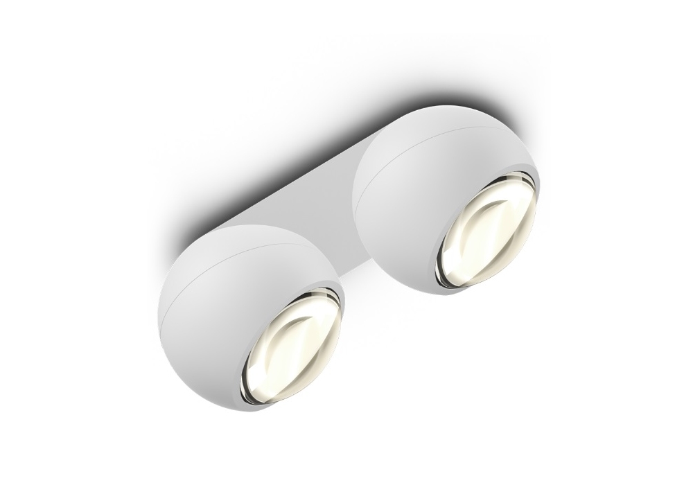 io Giro Doppio designed by Occhio is a 360 ° rotatable and 45 ° tiltable LED ceiling spotlight with spherical head and optical lens. Made of chromed, painted or anodized aluminum, plastic, glass and optical plastic. Available in different finishes.