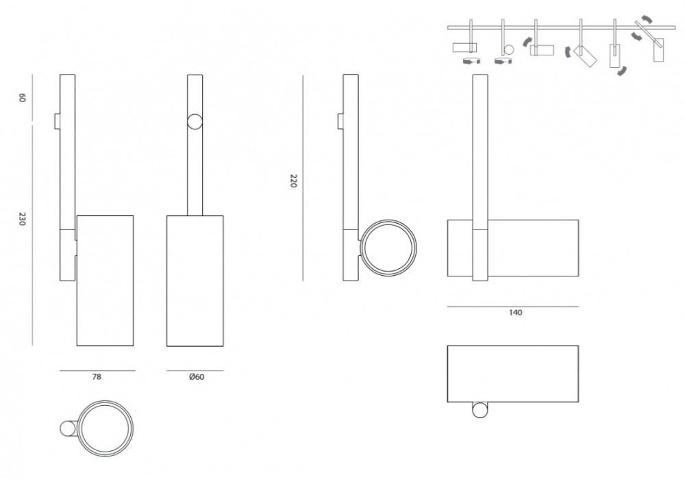 Cilon designed by Studio Truly Truly for Rakumba is a spotlight made of anodized aluminum, available in black or gold finishes.
