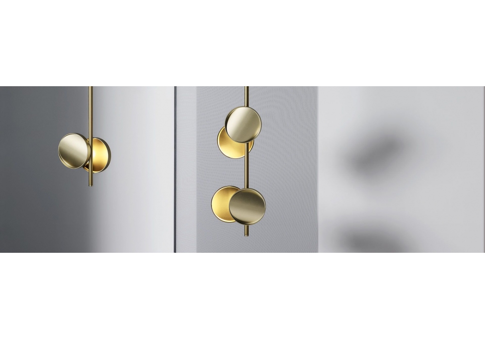 Cilon Disc designed by Studio Truly Truly for Rakumba is a spotlight made of black or gold anodized aluminum, polycarbonate diffuser.