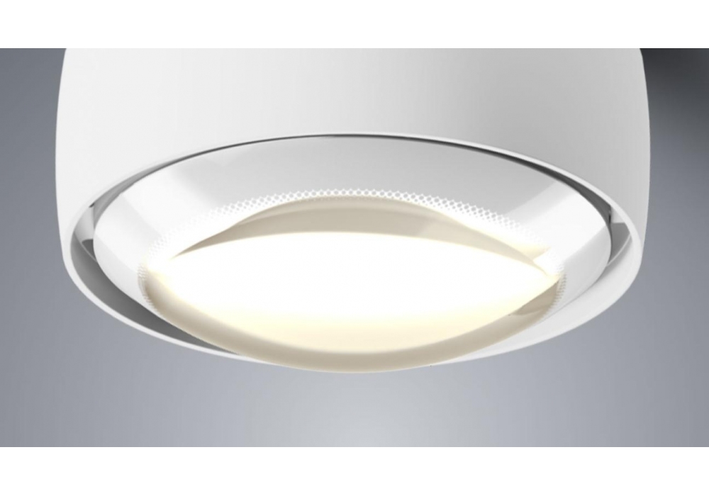 Più Alto designed by Occhio is a wall / ceiling LED spotlight with unilateral light emission with lens optics (Più) or flat cone glass with internal lens (Più R). Made of aluminum, brass, chromed or painted steel, optical plastic and glass. Available in different finishes and models.
