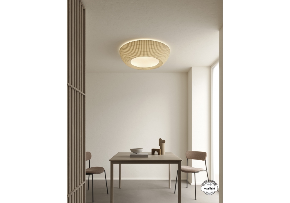 Bell designed by Manuel Vivian for Axo Light is a ceiling lamp with metal structure covered in super smooth fireproof pongé fabric. Available in different finishes and sizes.