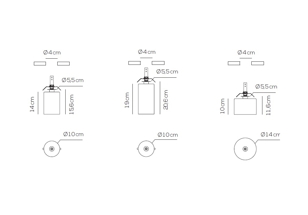 | Dimensions | • Ø 10 x H 14/15,6 cm; • Ø 10 x H 19/20,6 cm; • Ø 14 x H 10/11,6 cm |