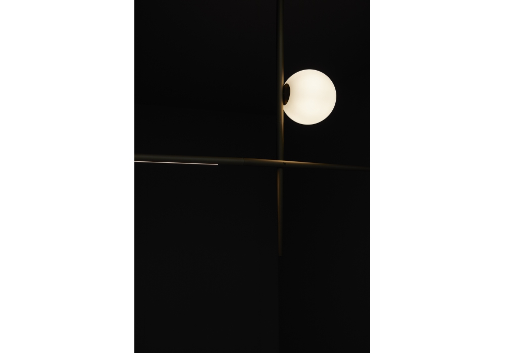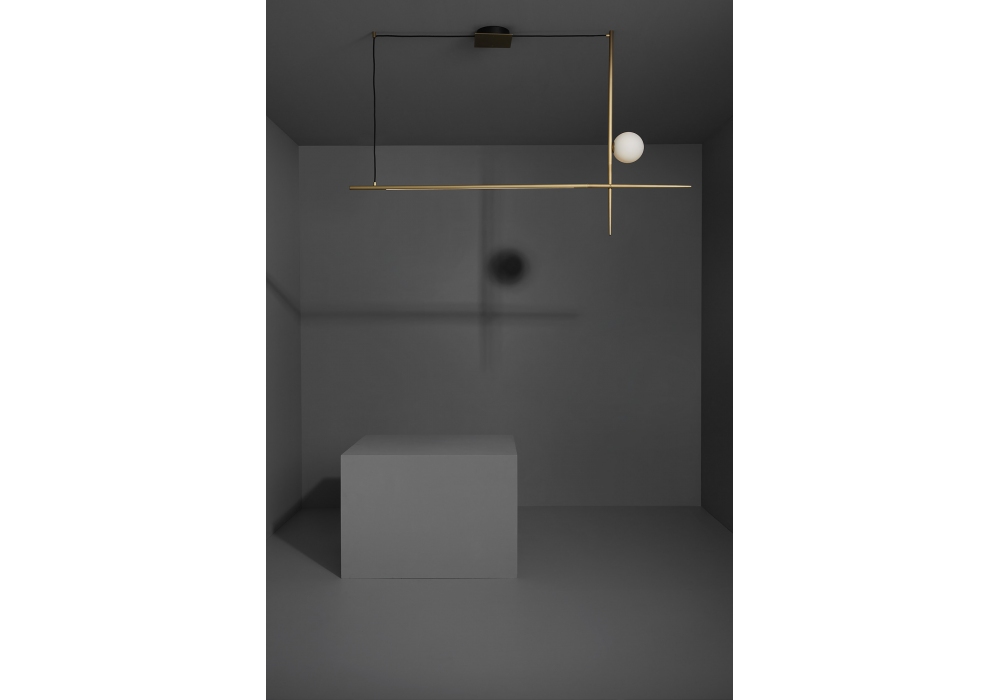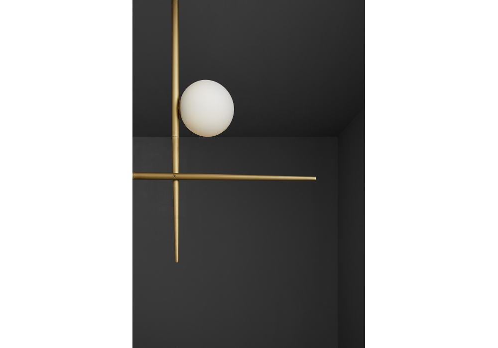 Spear designed by Massimo Tonetto for Venicem is a ceiling lamp with indirect downward light. Metal structure, glossy black nickel, matt black nickel or light burnished brass finish and satin blown glass diffuser.