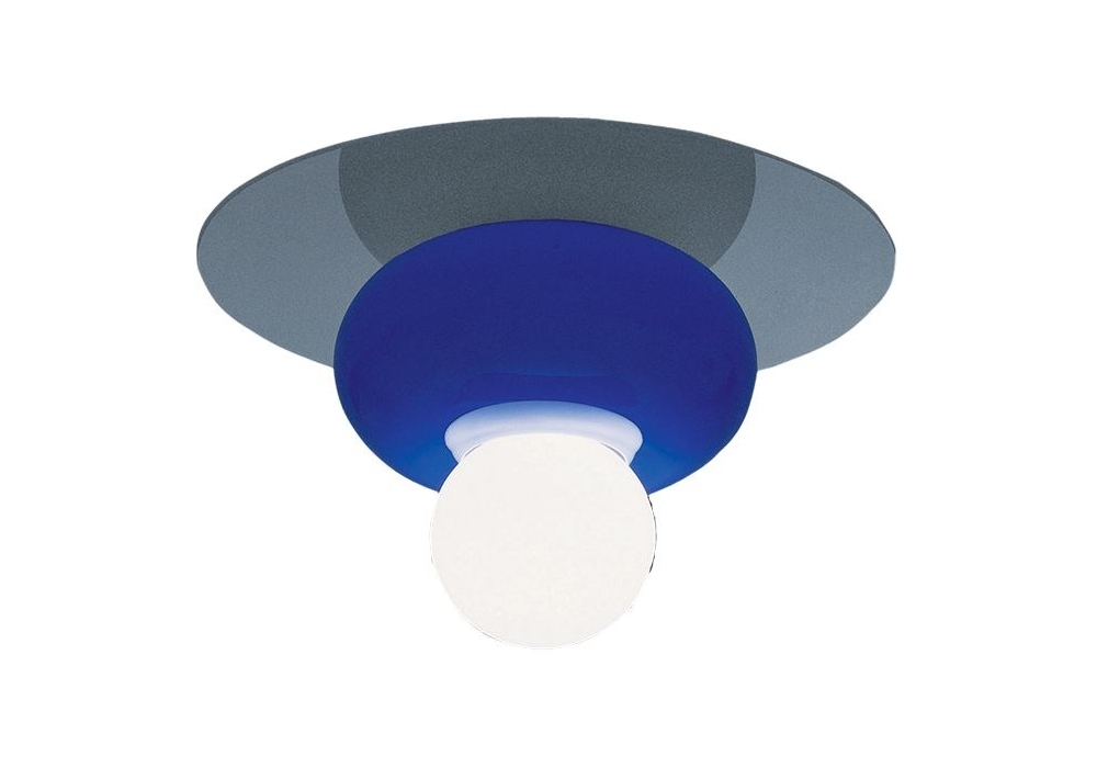 Firenze designed by Ettore Sottsass for Venini is a ceiling lamp in blown glass handcrafted by the master in the Furnace. The structure is in white painted metal.