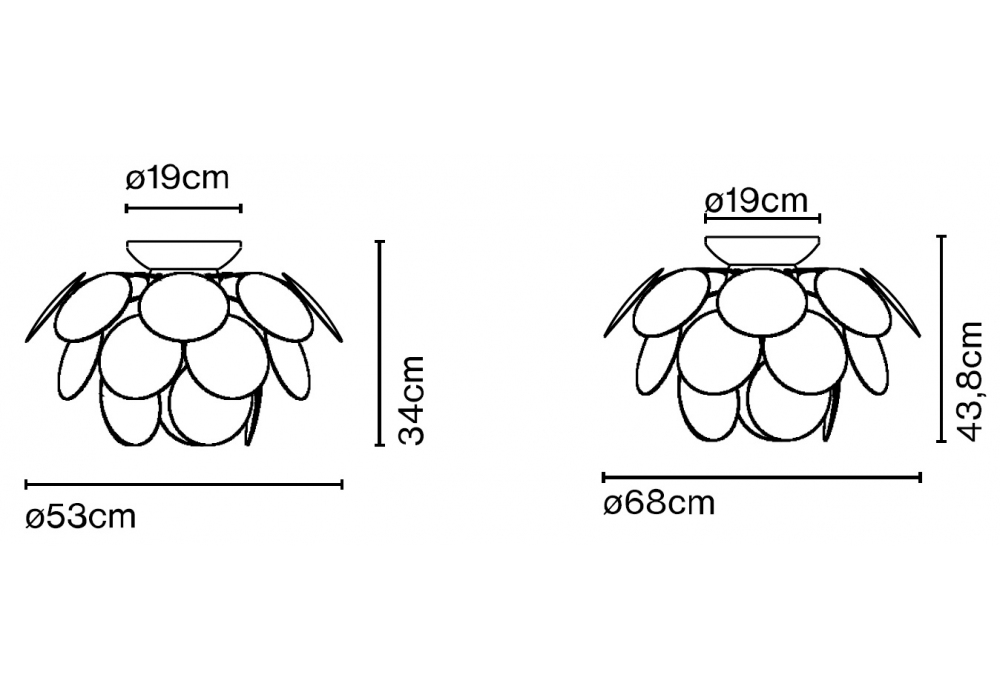| Dimensions | • Ø 53 x H 34 cm; • Ø 68 x H 43,8 cm |