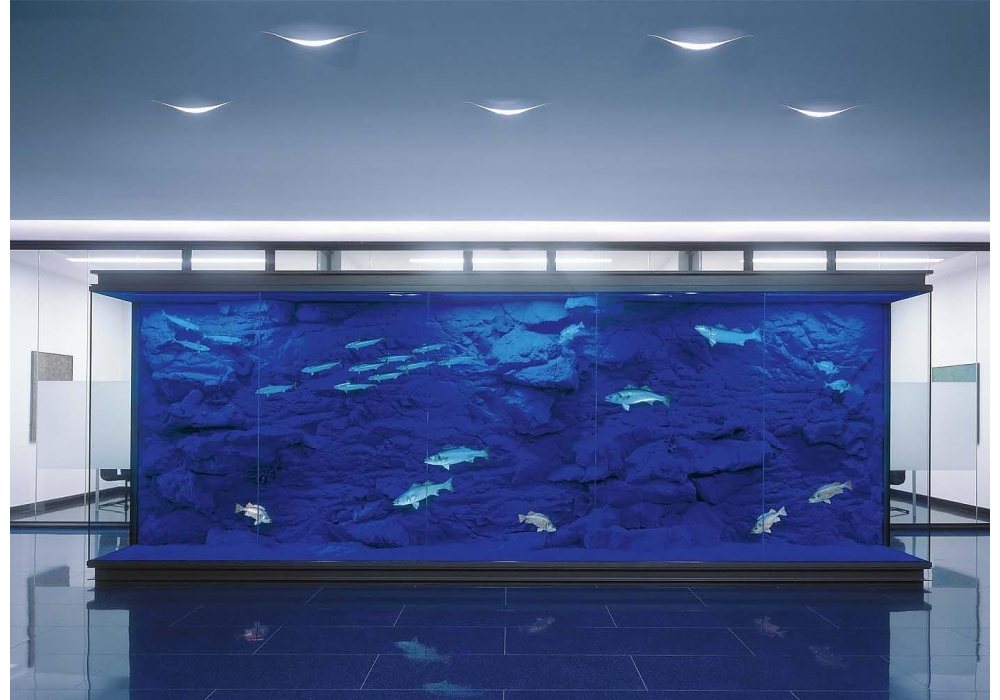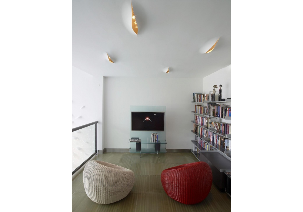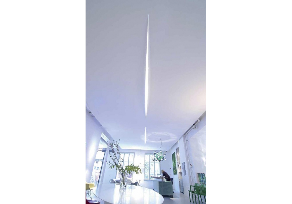 Schlitz Up designed and produced by Ingo Maurer is a LED ceiling lamp with aluminum and fiberglass structure. It is suitable for recessed installation in false ceilings. The bulbs are not covered (no diffuser glass) so they are visible from the slot.