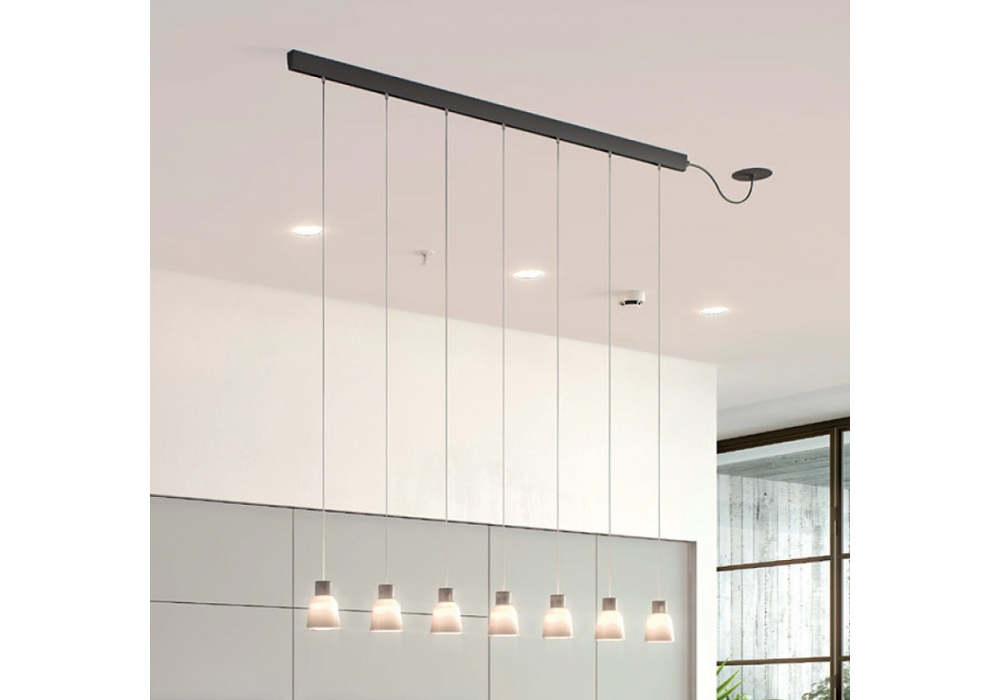 Drip/Drop Linear designed by Christophe Mathieu for Bover is a ceiling lamp with linear rosette in painted quadrangular metal. The diffusers are rounded in polycarbonate or borosilicate glass and shield LED-type light sources with a dimmable system. Drip/Drop Linear is available in different models and lampshade finishes.