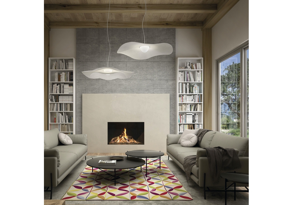 Mediterrània designed by Alex Fernández Camps for Bover is a pendant lamp with support and supporting structure in metal and painted aluminum. The lampshade is in aluminum with a polycarbonate diffuser and shields a LED-type light source with Triac dimmability system. Mediterrània is available in different models and finishes.