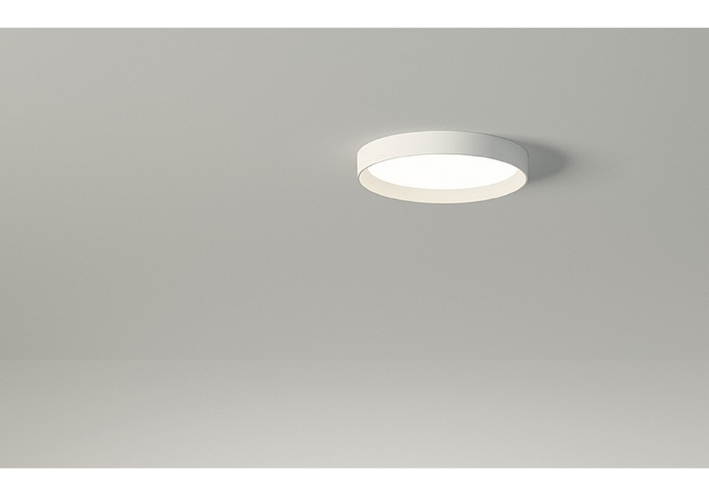 Up Round designed by Ramos & Bassols for Vibia is a circular ceiling lamp with supporting structure and lamp body in painted aluminium. The diffuser is in methacrylate and screens a dimmable LED light source. Up Round is available in different sizes and finishes.