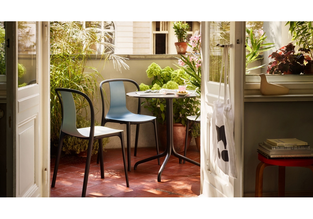 Belleville Chair Plastic designed by Ronan & Erwan Bouroullec for Vitra is a stackable chair made with shell and structure in plastic. Suitable for outdoor use. Available in different finishes.