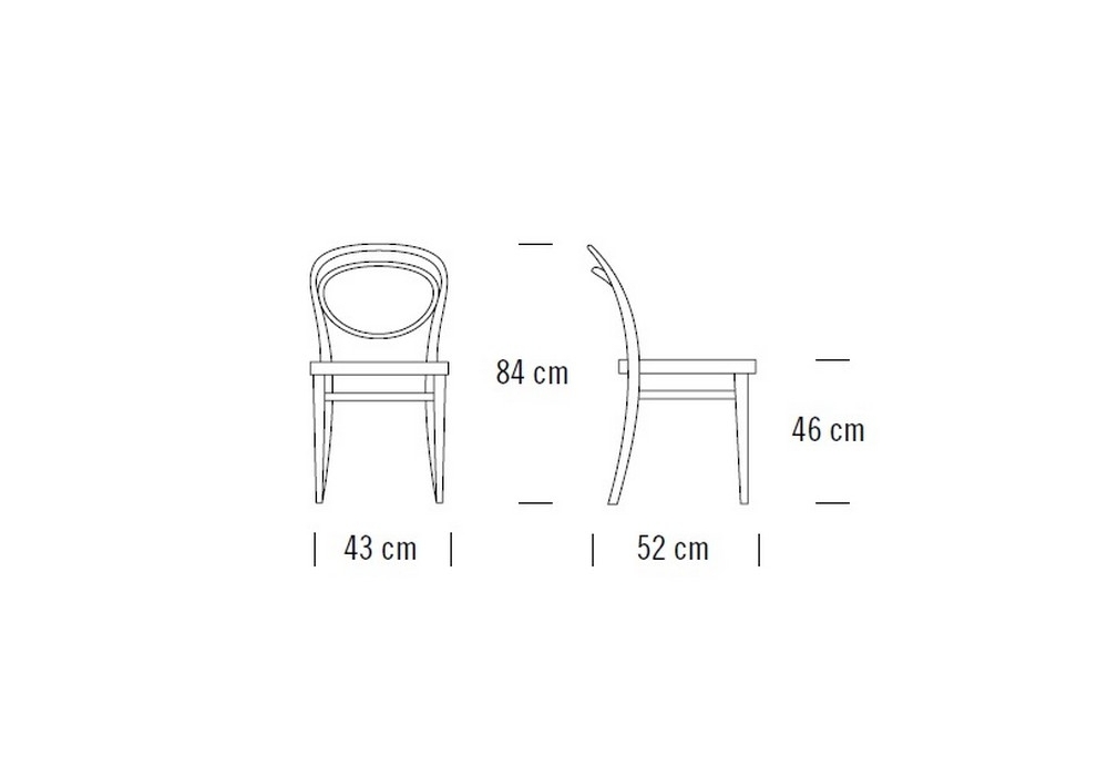 215 R designed by Michael Thonet for Thonet is a chair in curved wood and plastic feet. Seat and back in rattan cane. Structure in beech, available in different finishes.