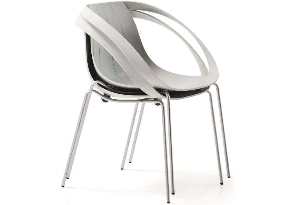 Impossible Wood designed by Nipa Doshi & Jonathan Levien for Moroso is a set of 2 chairs with armrests with polypropylene shell and base in painted, chromed or Aisi 304 stainless steel tube (suitable for outdoor). Insoles in polypropylene.