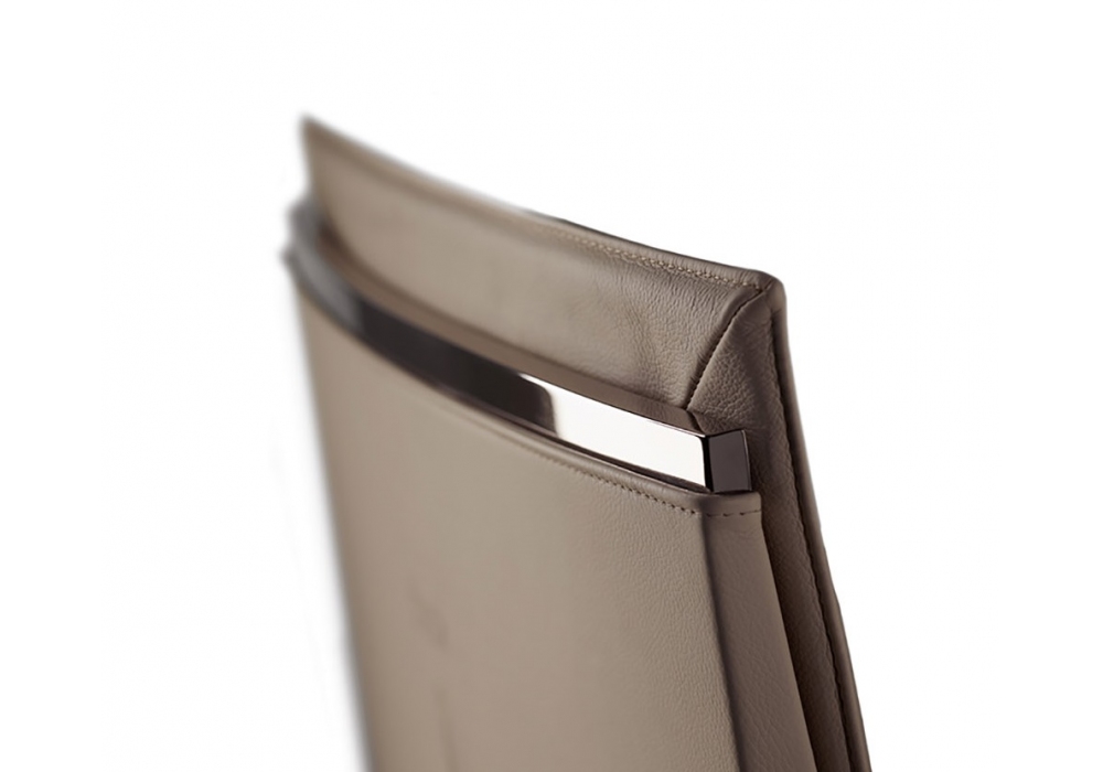 Fitzgerald designed by Jean-Marie Massaud for Poltrona Frau is a chair made of structure in rigid polyurethane with a metal reinforcement, padding in polyurethane foam, polyester wadding and strengthenedwith regenerated leather. Metal details in Zinc alloy with aruthenium finish. Upholstery no-removable available in leather SC and Nest.