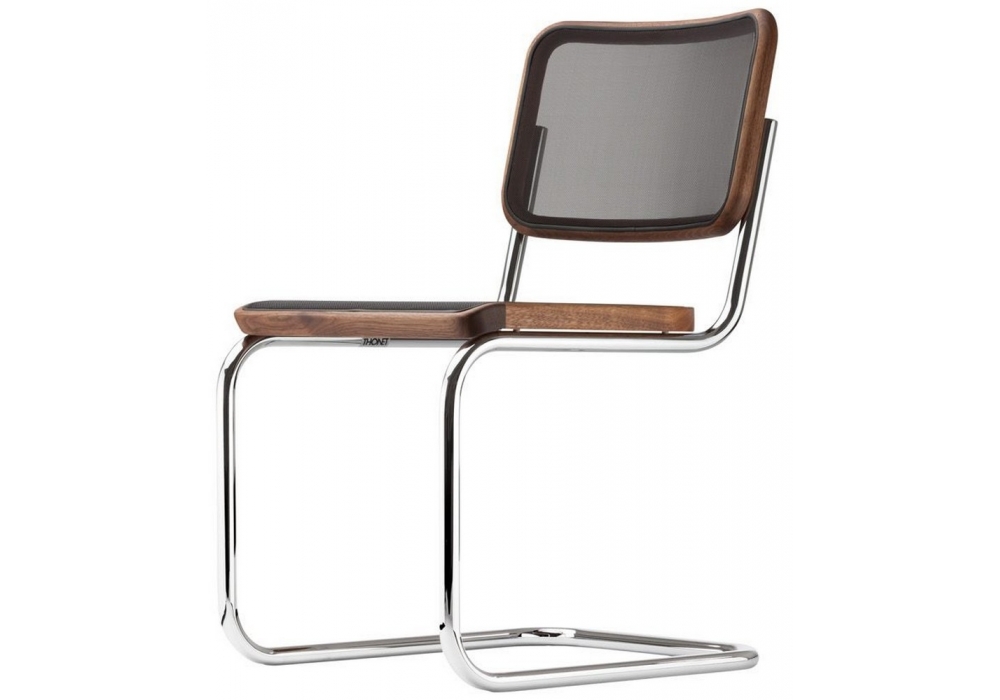 S 32 N designed by Marcel Breuer, Artistic copyright Mart Stam for Thonet is a sled chair with chromed steel tubular. Seat and back in mesh fabric. Back and seat edge available in different finishes.