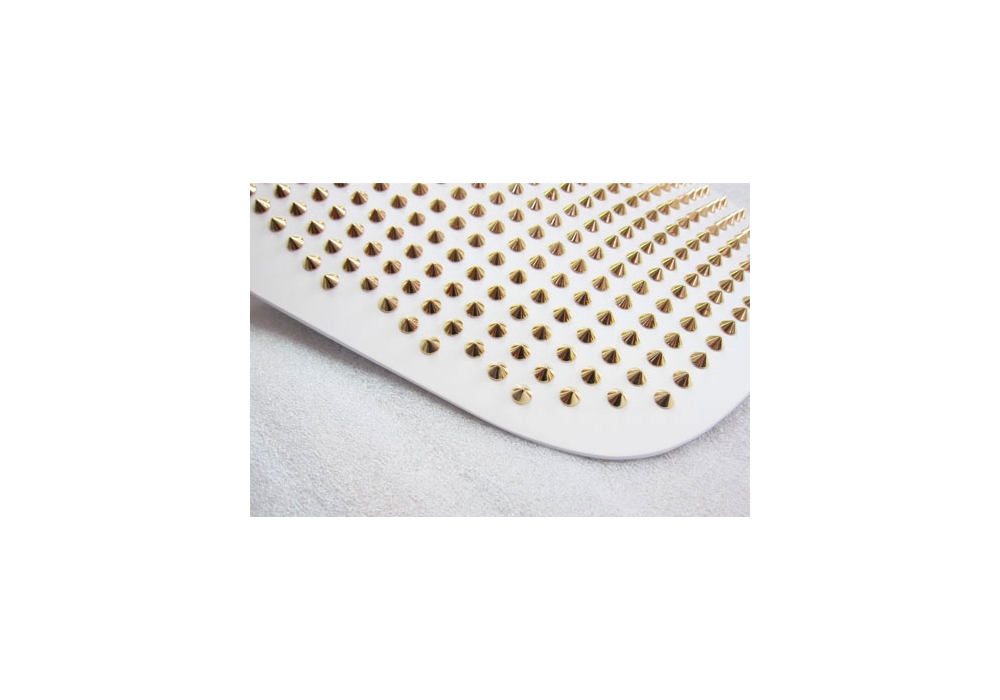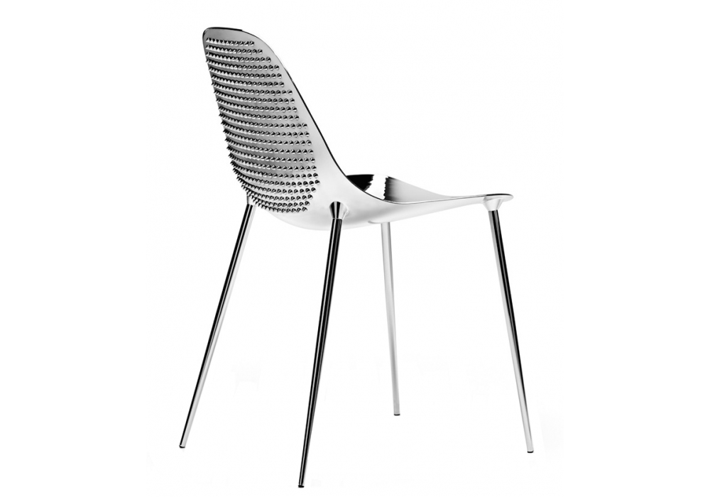 Mammamia Punk designed by Lapo Ciatti for Opinion Ciatti is a chair made with die-cast aluminum shell and painted steel structure, not stackable. Backrest with 398 studs applied by hand. Available in different finishes. Optional felt and plastic feet.