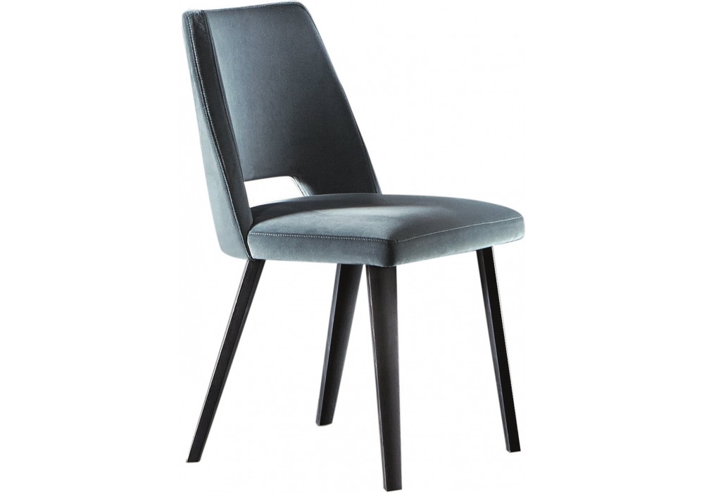 Thea designed by Pinuccio Borgonovo for Gallotti&Radice is a chair with seat and backrest covered by fabric or leather as per samples. Curved plywood backrest, plywood seat with different density polyurethane foam and polyester fibre padding. Black open pore lacquered oak legs.