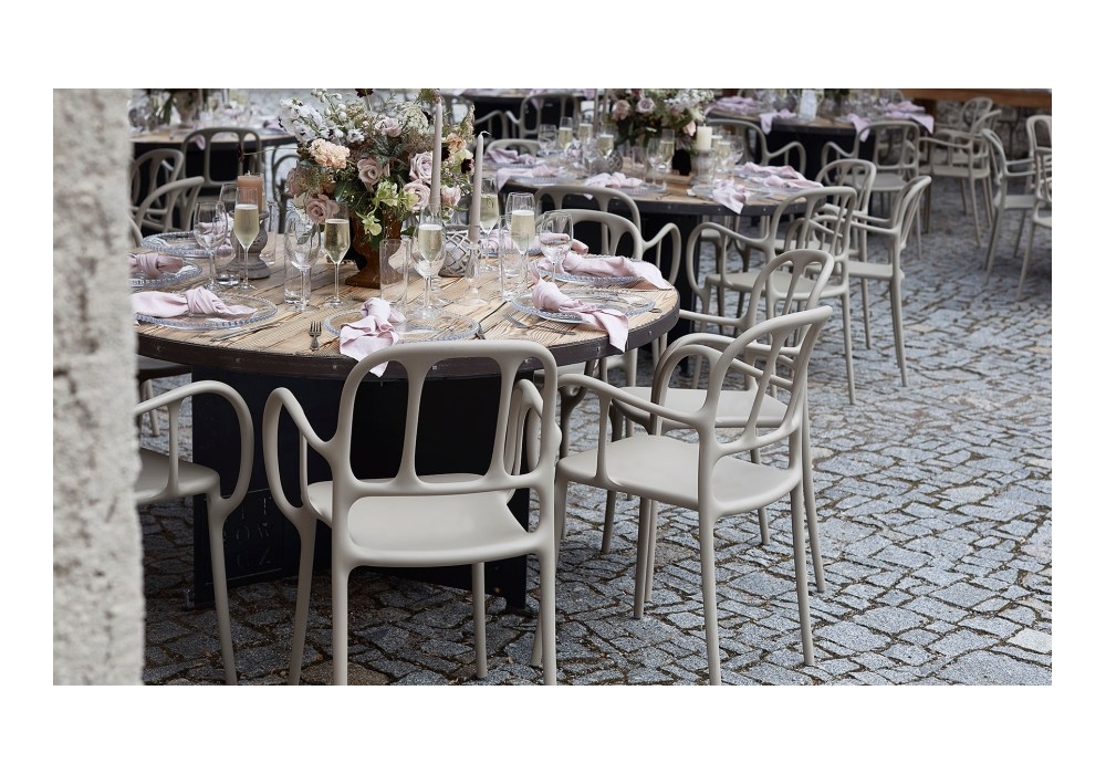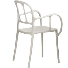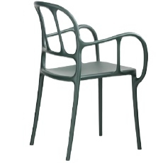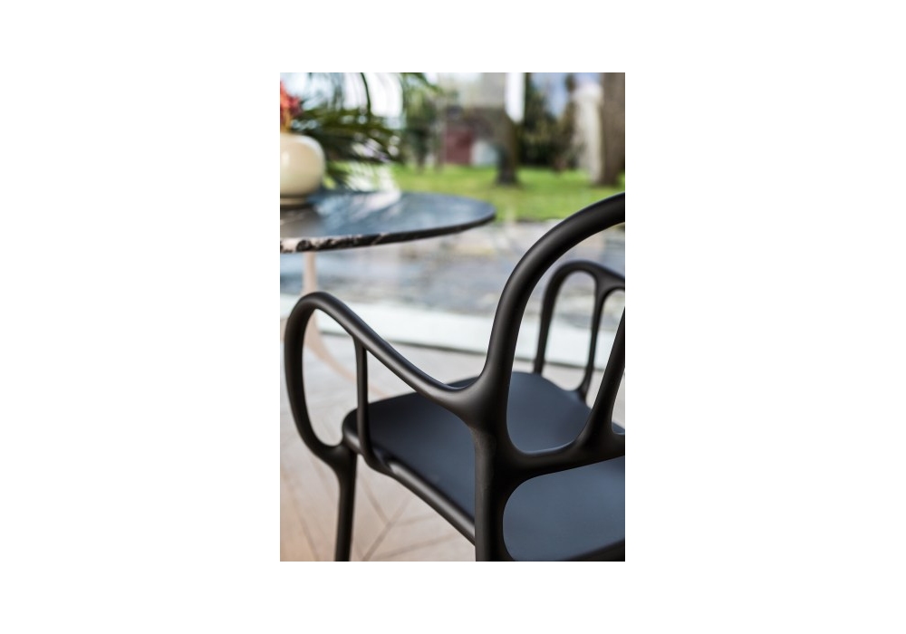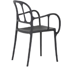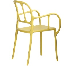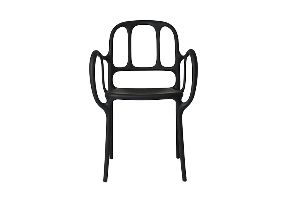 Milà designed by Jaime Hayón for Magis is a stackable chair with armrests, made of polypropylene with glass fiber added. Silk effect finish. Available in different colours.