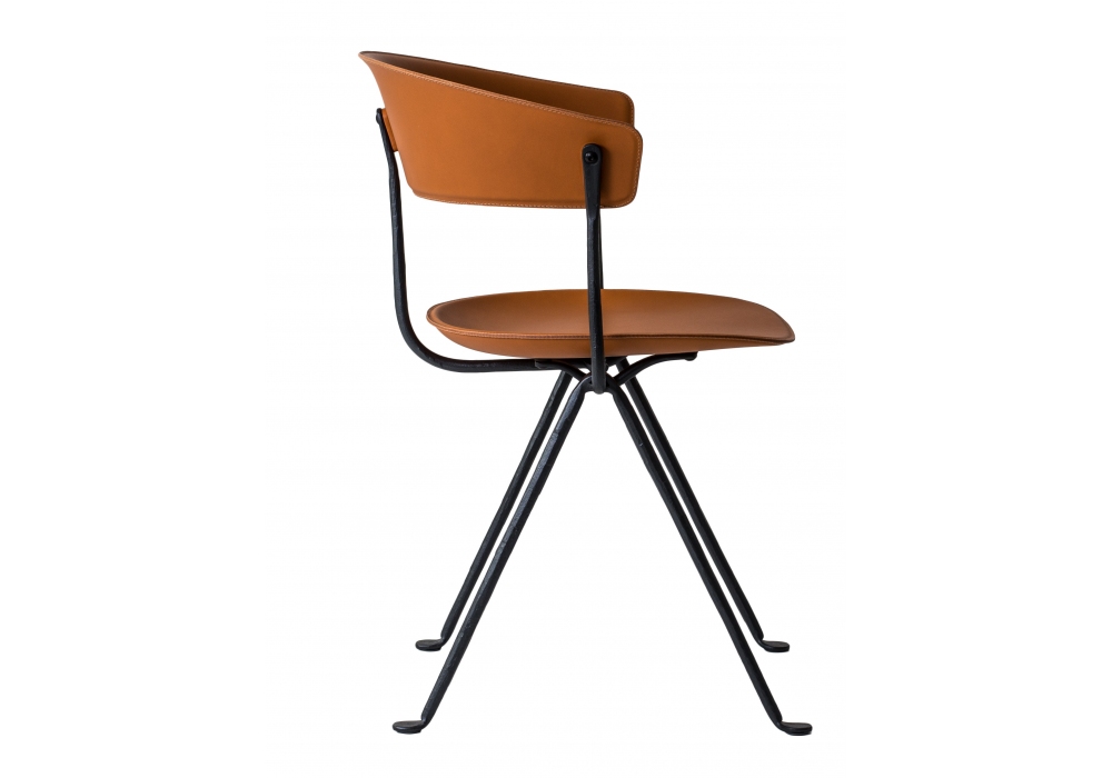 Officina designed by Ronan & Erwan Bouroullec for Magis is a chair with forged iron structure, hot dip galvanized or polyester painted, seat and back upholstered in fabric or full grain leather. Upon request, the pillow is also available.