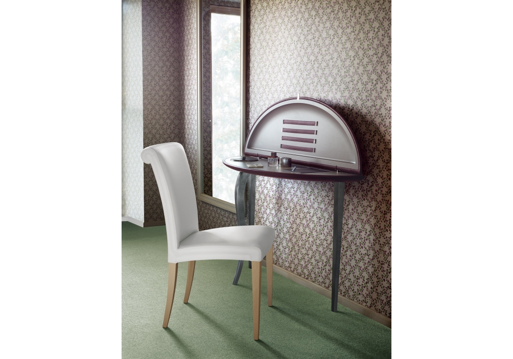 Vittoria designed by Poltrona Frau is a chair made of supporting structure and legs in solid seasoned beech wood, padding in polyurethane foam. The legs are available in the following finishes: ash in a wenge stain and ash in a moka stain. Upholstery in in Pelle Frau® leather or fabric.