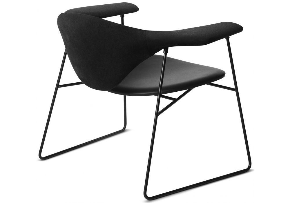 Masculo Lounge designed by GamFratesi for Gubi is a chair made with steel structure and fabric or leather upholstery.
