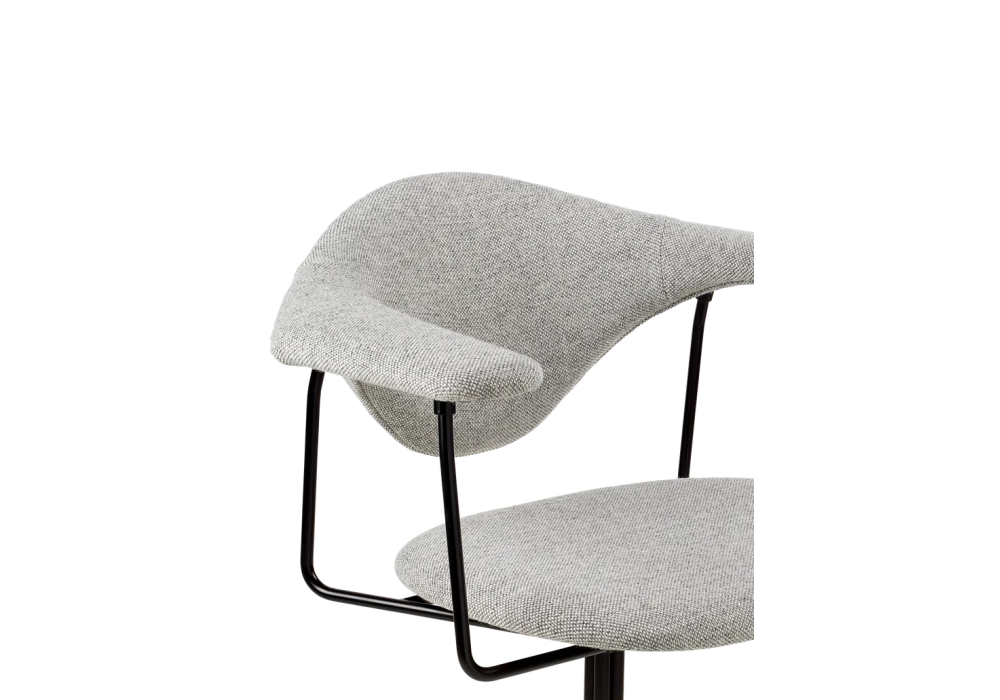 Masculo Meeting designed by GamFratesi for Gubi is a chair with swivel base made with semi-matt black steel structure and upholstery in fabric or leather.