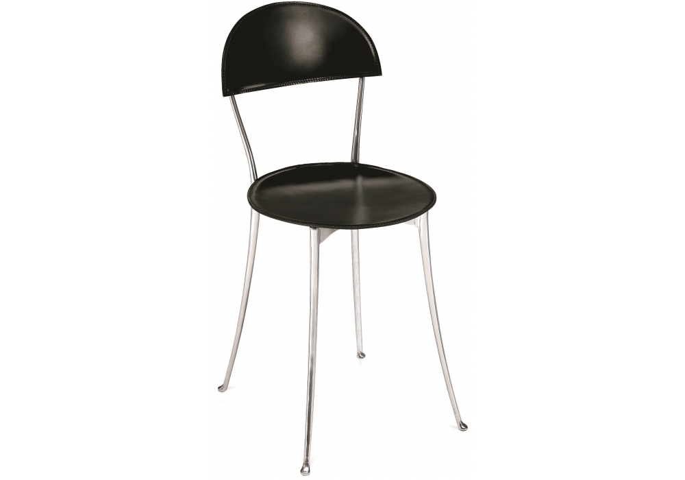 2090 Tonietta designed by Enzo Mari for Zanotta is a chair with aluminium alloy frame, polished or painted black. Seat and back in polypropylene covered in cowhide 95.