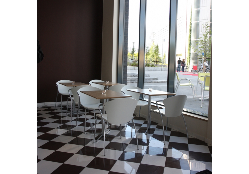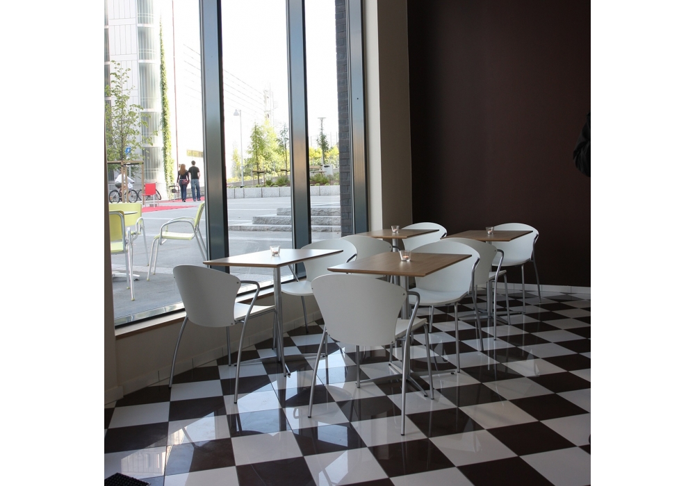 Bessi designed by Erla Solveig Óskarsdóttir for OneCollection is a beautiful stacking chair with chrome frame available in 2 different finishes and shell made of black or white plastic. Bessi's easy compact expression unites furniture design with permanent sitting comfort and is ideal for every user.