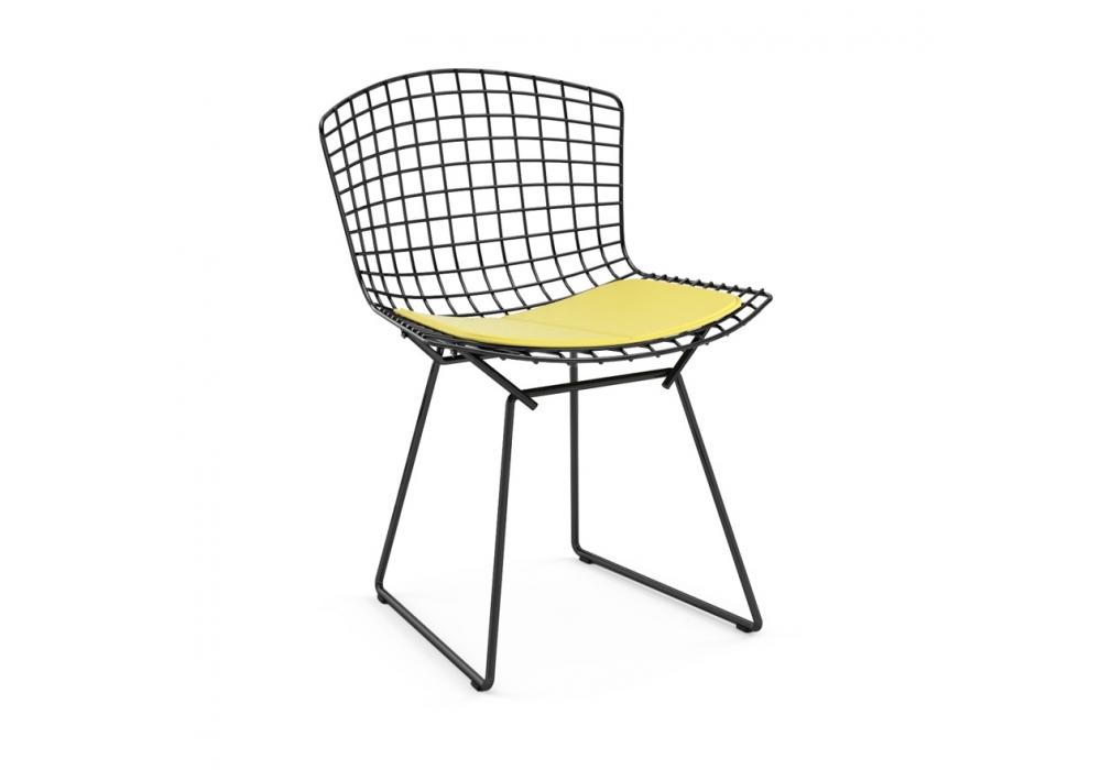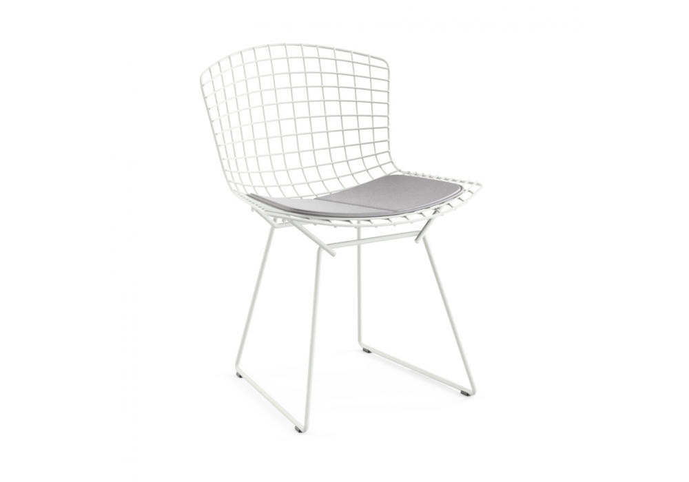 Bertoia designed by Harry Bertoia for Knoll is a chair made of steel rod welded at every intersection. The shell is joined to the base with stainless steel screws. The seat cushion (removable) is fixed with straps equipped with snaps. Available in various finishes.