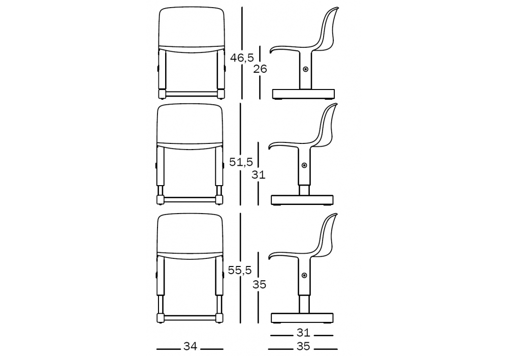 | Height | 46,5 / 51,5 / 55,5 cm |